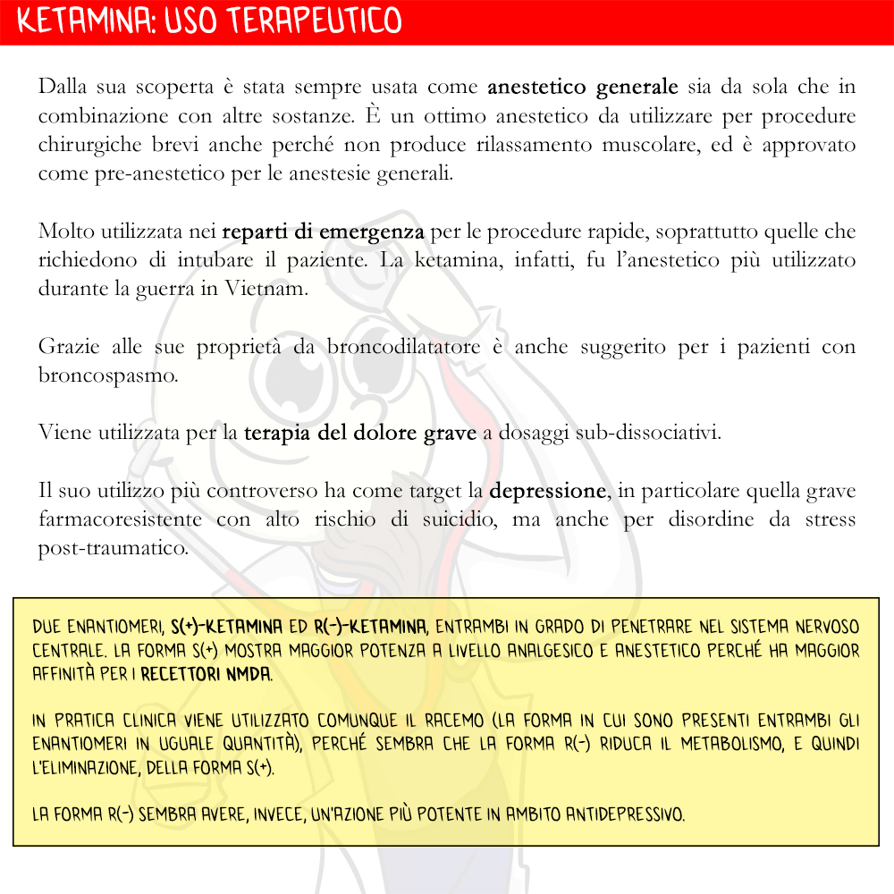 Visto il suo ampio uso si potrebbe scrivere un libro intero sugli utilizzi della ketamina in medicina.